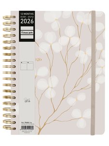 AGENDA ANUAL (2026) CATALAN FINOCAM FLOWER JOURNAL WIRE-O tapa EXTRA con GOMA E10 155x212 D/P ROSA